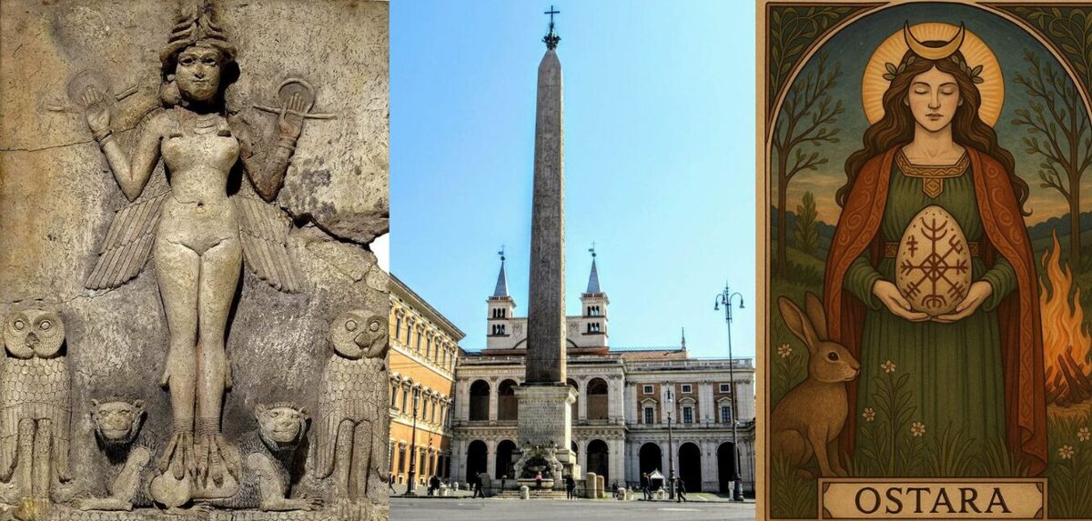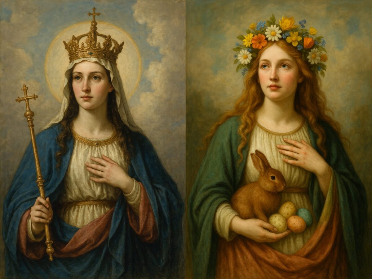Katolícka cirkev prevzala pohanské predstavy o bohyni matky a kráľovnej neba do svojich učení o Márii. Tu vidíme niekoľko obrázkov zobrazujúcich Máriu korunovanú za Kráľovnú neba v rôznych katolíckych reliéfoch a maľbách. Pohanská Kráľovná neba, najmä Cybela, bola považovaná za sprostredkovateľku s bohmi a toto presné presvedčenie bolo aplikované na Máriu Rímskokatolíckou cirkvou, je to pohanské, ako to len môže byť, a nemá to v Biblii žiadny základ.